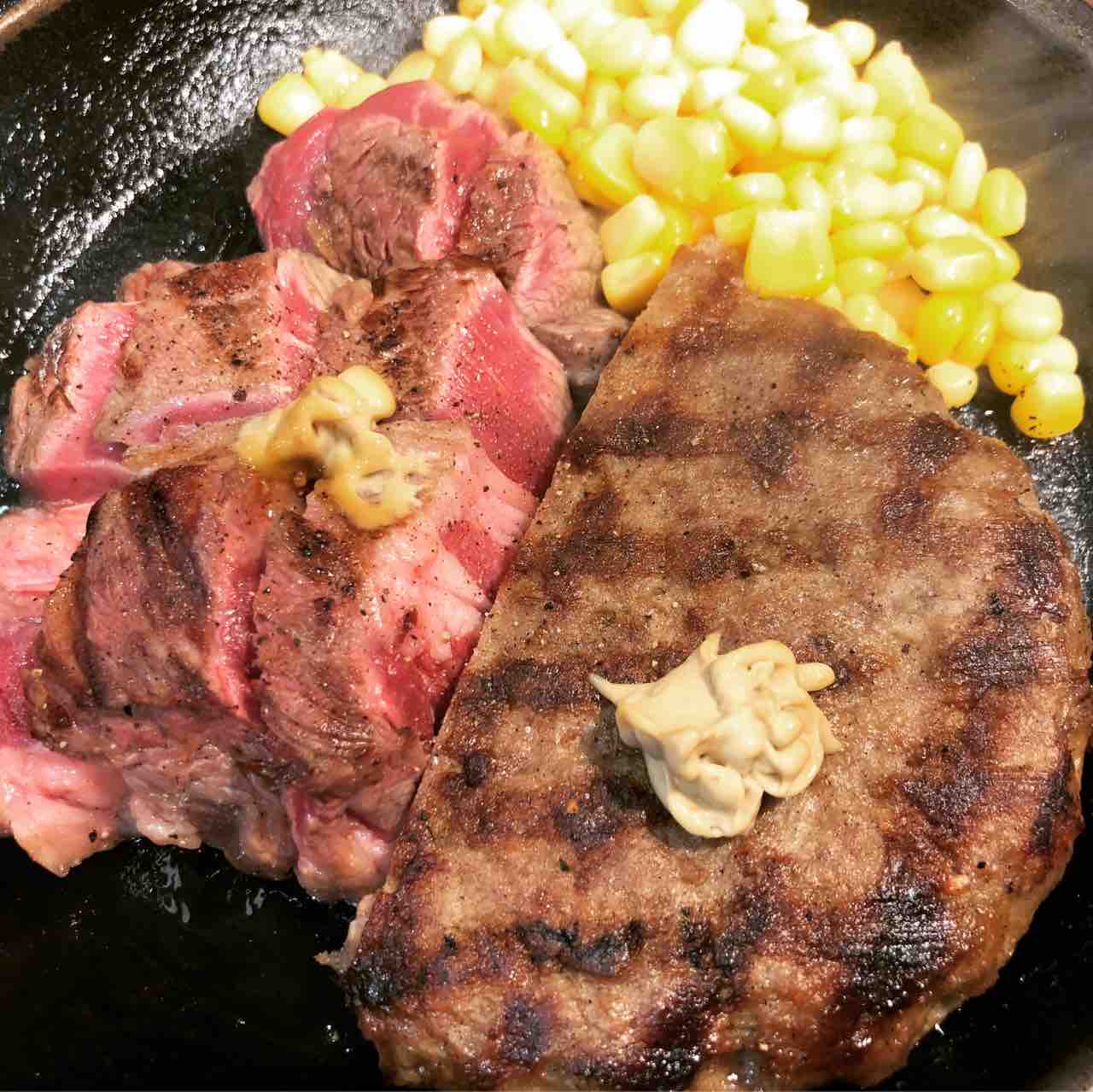 [食べた物]ワイルドステーキ200g+ハンバーグ 1,290円