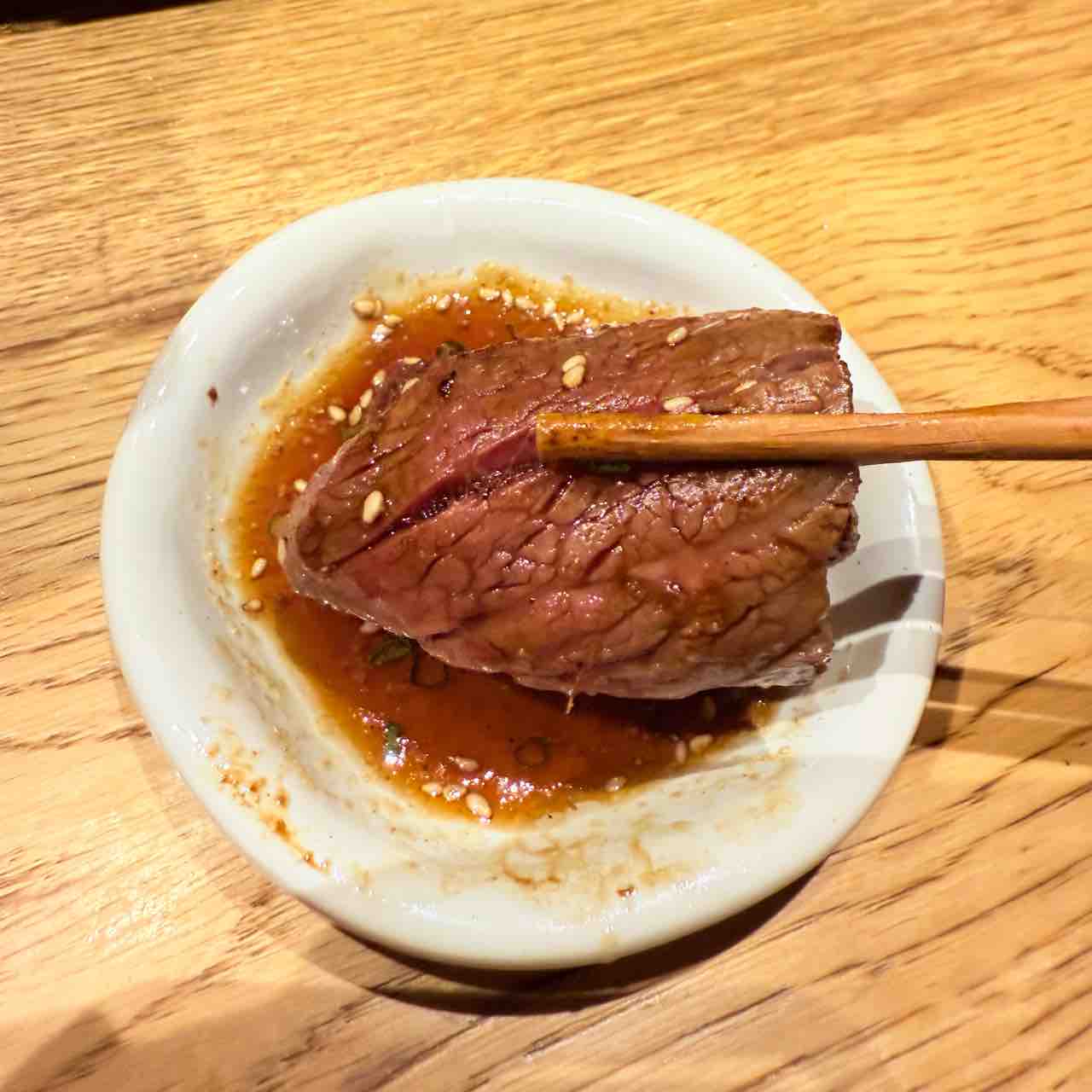 赤身らしいお肉の味と柔らかい食感で、口の中でタレとまとわりあって、旨味が広がっていきます。