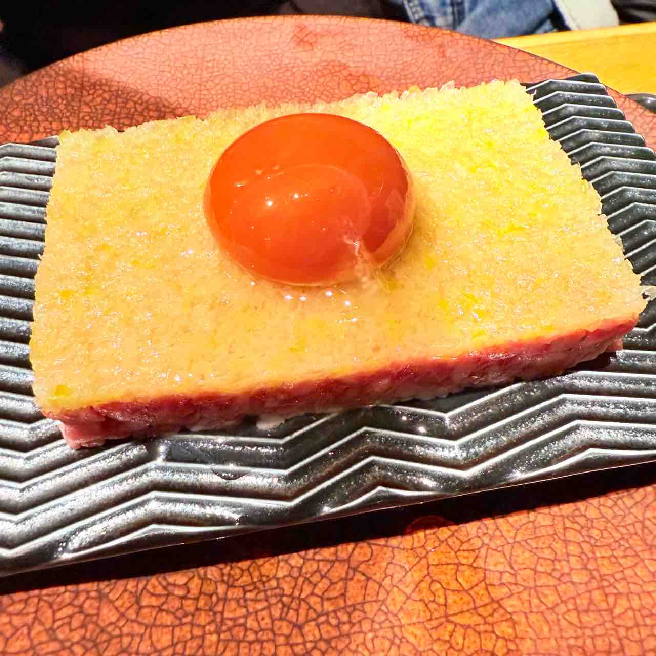 黄身とネギ塩・生肉との調和がいい。