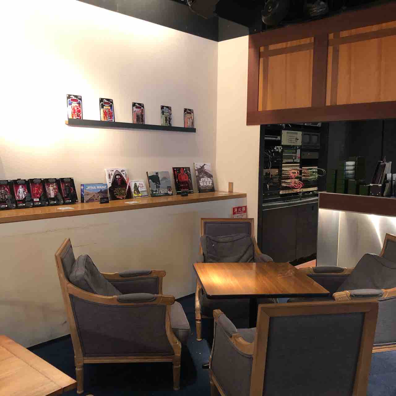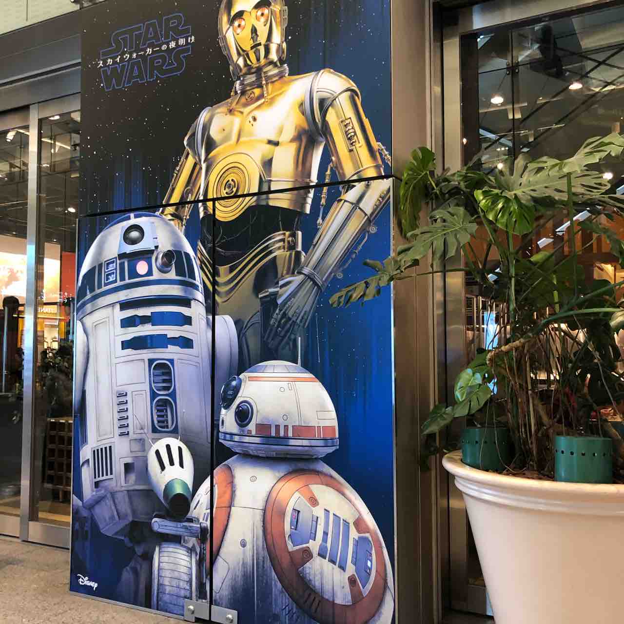 壁側にモニターがあり、スターウォーズ予告編など放送されていました。