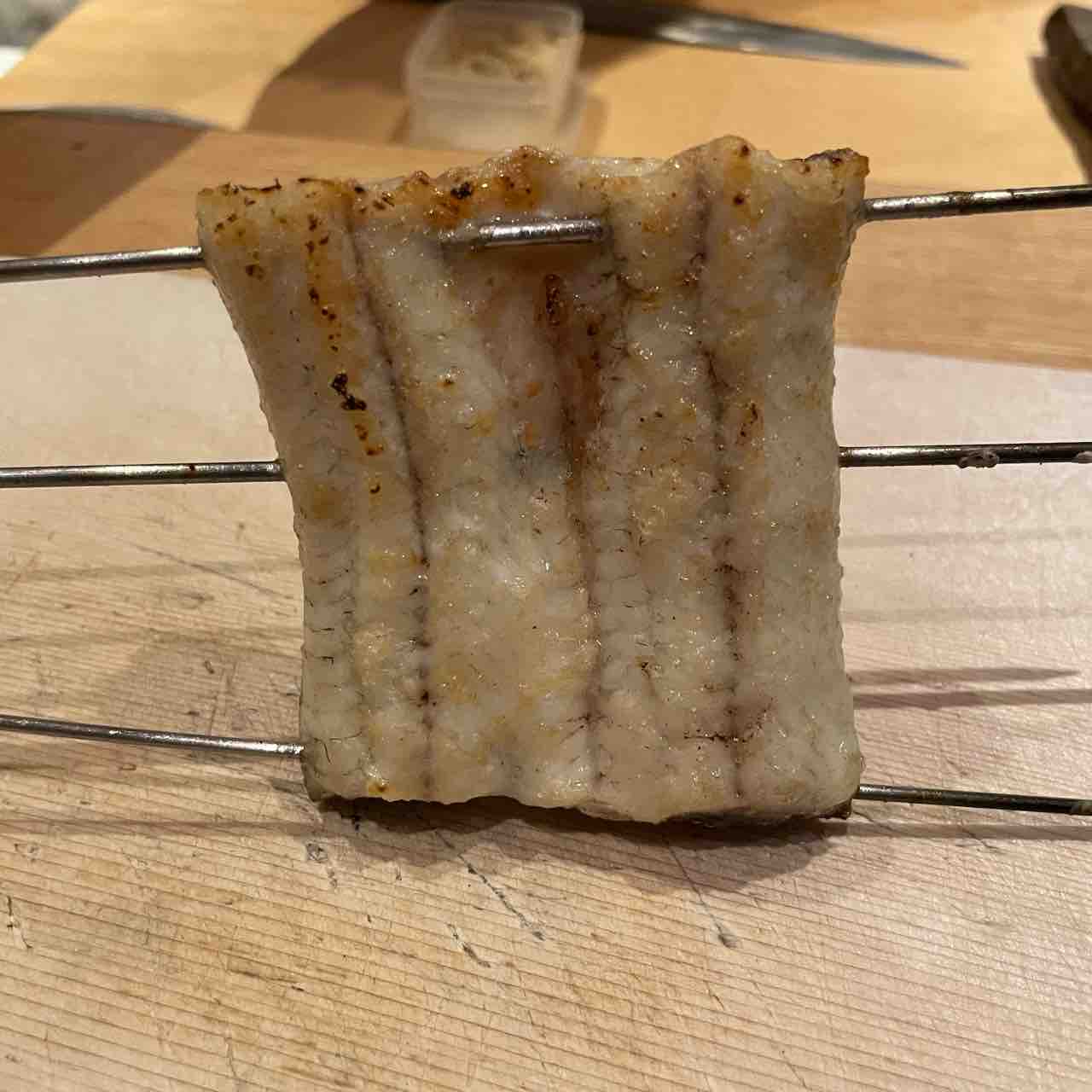 「舞阪産放血神経〆鱧 炭火焼、梅肉」